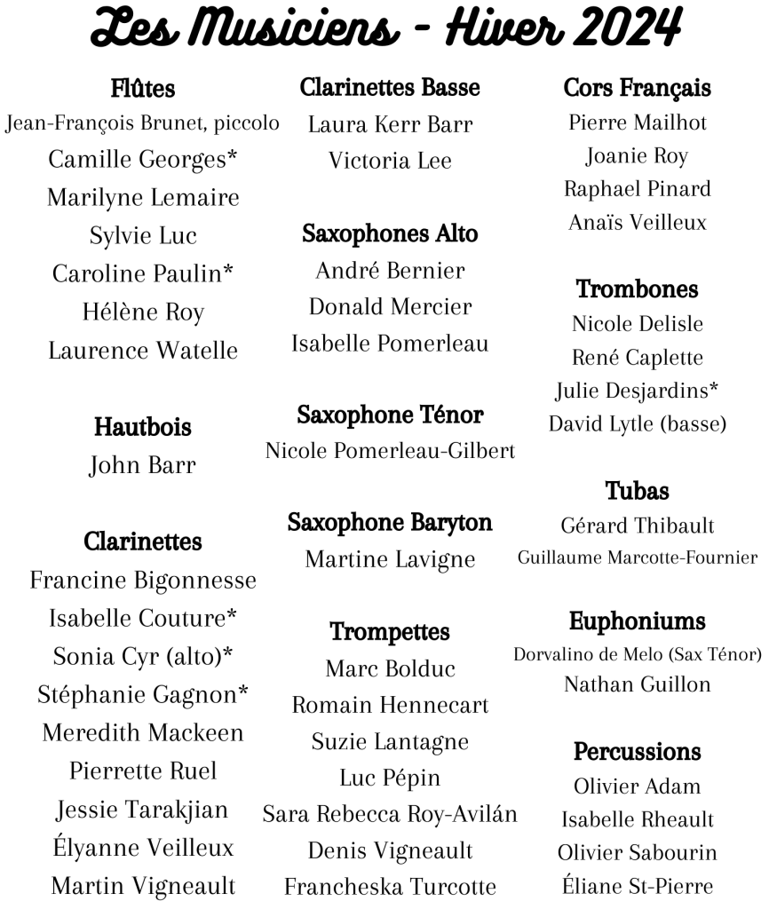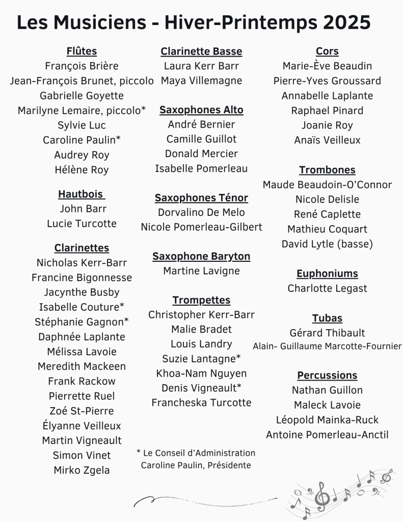 - À tous ceux et celles qui nous ont aidés ou offert leur soutien, de près ou de loin (logistique) pendant la saison 2024-2025 ainsi que lors du concert.